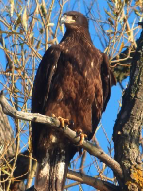 Species Information: Wingspan of up to 2 m. These eagles don’t get their characteristic white head and dark brown body until they reach maturity at FIVE YEARS OLD. Until then, these birds have all sorts of different plumages and streaky browns and whites on their bodies. Even their beak changes colour. Females look similar to males, except they’re about 25% larger. Juveniles have dark brown heads and bodies with variable white mottling or streaking until they reach their fifth year. Bald eagles make their homes in forested areas near large bodies of water.
