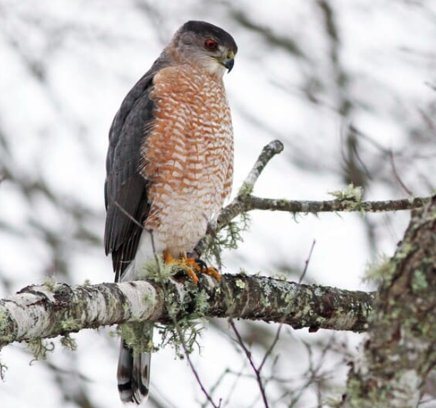 Cooper’s Hawks can appear to be just a larger version of the Sharp-shinned Hawk. They are found in the breeding months in southern Ontario. They stalk feeders and feed almost exclusively on other birds. Their habitat is forests and wooded areas also nest in suburban wooded areas and backyards too. They primarily feed on small to medium-sized birds and small mammals. Females tend to be larger and more dominant over the males of this species.