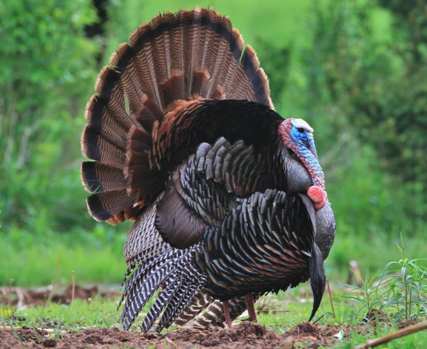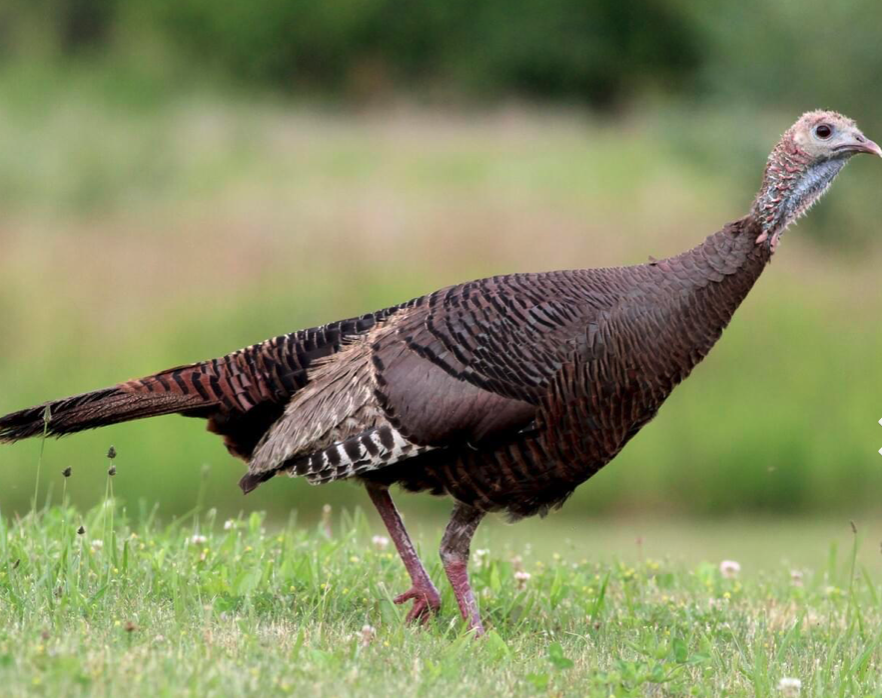Species Information: Range of wild turkeys is limited to southern Ontario. At nighttime, they fly up into trees to roost .Wild turkeys can run at speeds of up to 19 km, per hour. At the start of spring, male wild turkeys get together in clearings to perform courtship displays. They puff up their feathers, lower their wings, fan out their tails and slowly strut, while making their famous gobble sounds. Males weigh between 8.1-13.6 kg, and females between 3.6-6.3 kg. Males are called “toms” or “gobblers”. Ontario is in the northernmost edge of the eastern wild turkey's range. Efforts to restore wild turkeys began in 1984 and were successful. Ontario experienced a rapid expansion of the number and range of the birds in the province.